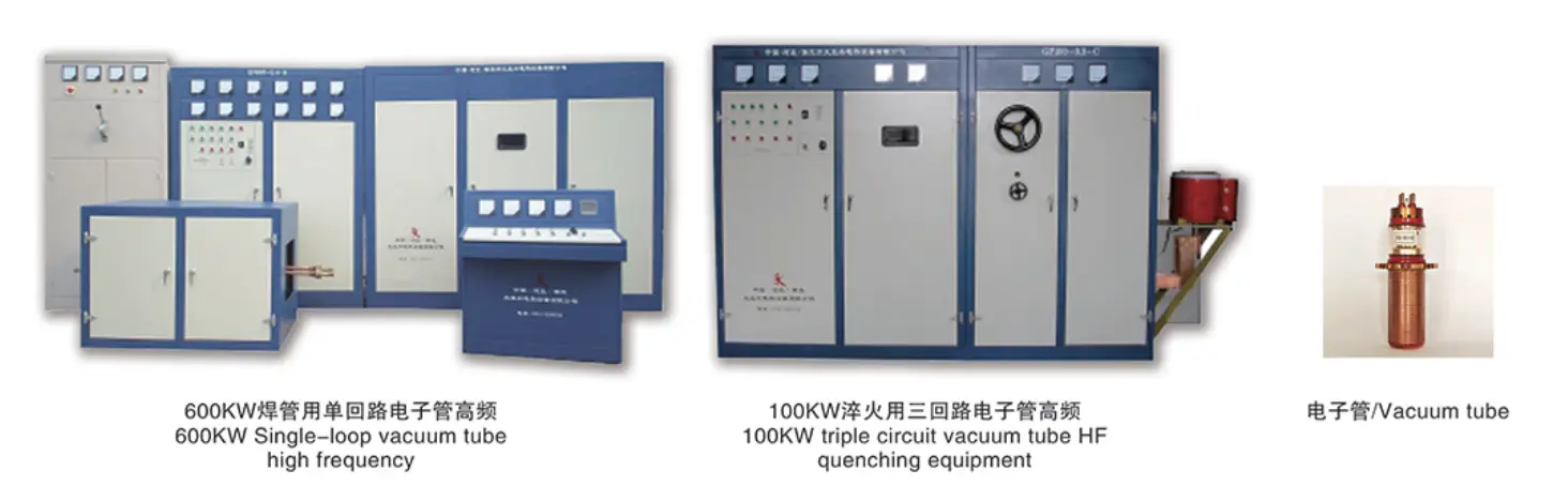 Poniższe zdjęcia przedstawiają rurę próżniową z pojedynczą pętlą o mocy 600 kW i wysoką częstotliwość oraz sprzęt do hartowania HF z potrójnym obwodem rury próżniowej o mocy 100 kW.